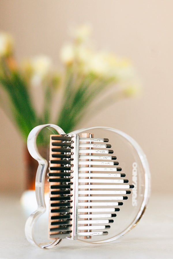 Šīs kalimbas ir izgatavotas no akrila, kas ir draudzīgs un drošs materiāls.